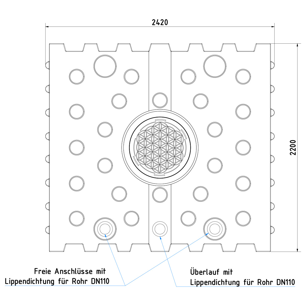 - AQa.Line Flachtank 4000 L (inkl. vormontierter Anschlüsse DN110)