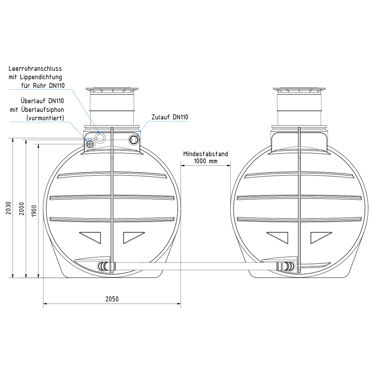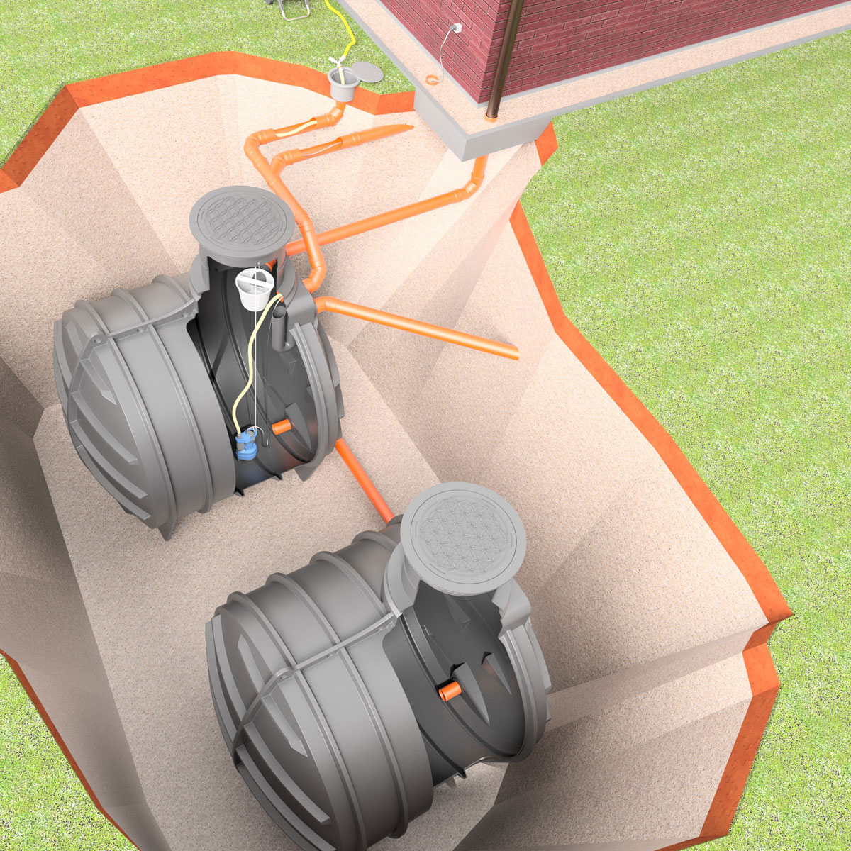 Bei dieser Mehrbehälterlösung werden zwei Behälter mit einem Fassungsvolumen von jeweils 6000 Liter kombiniert, um ein Gesamtvolumen von 12.000 Litern zu erzielen.