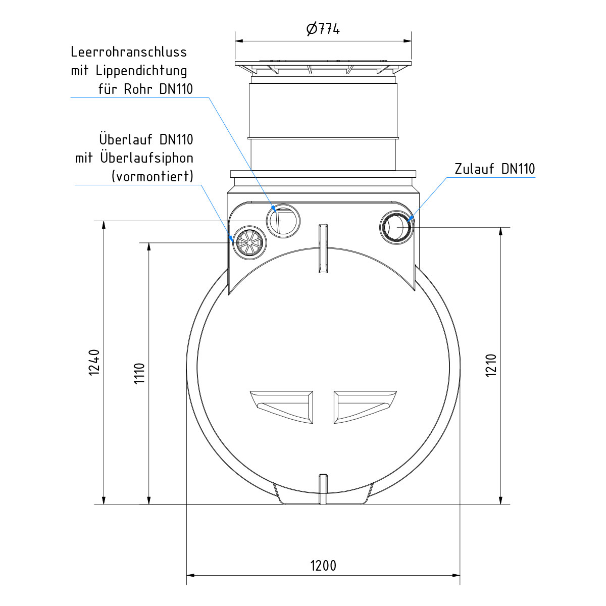 - AQa.Line Zisterne 2000 L (inkl. vormontierter Anschlüsse DN110)