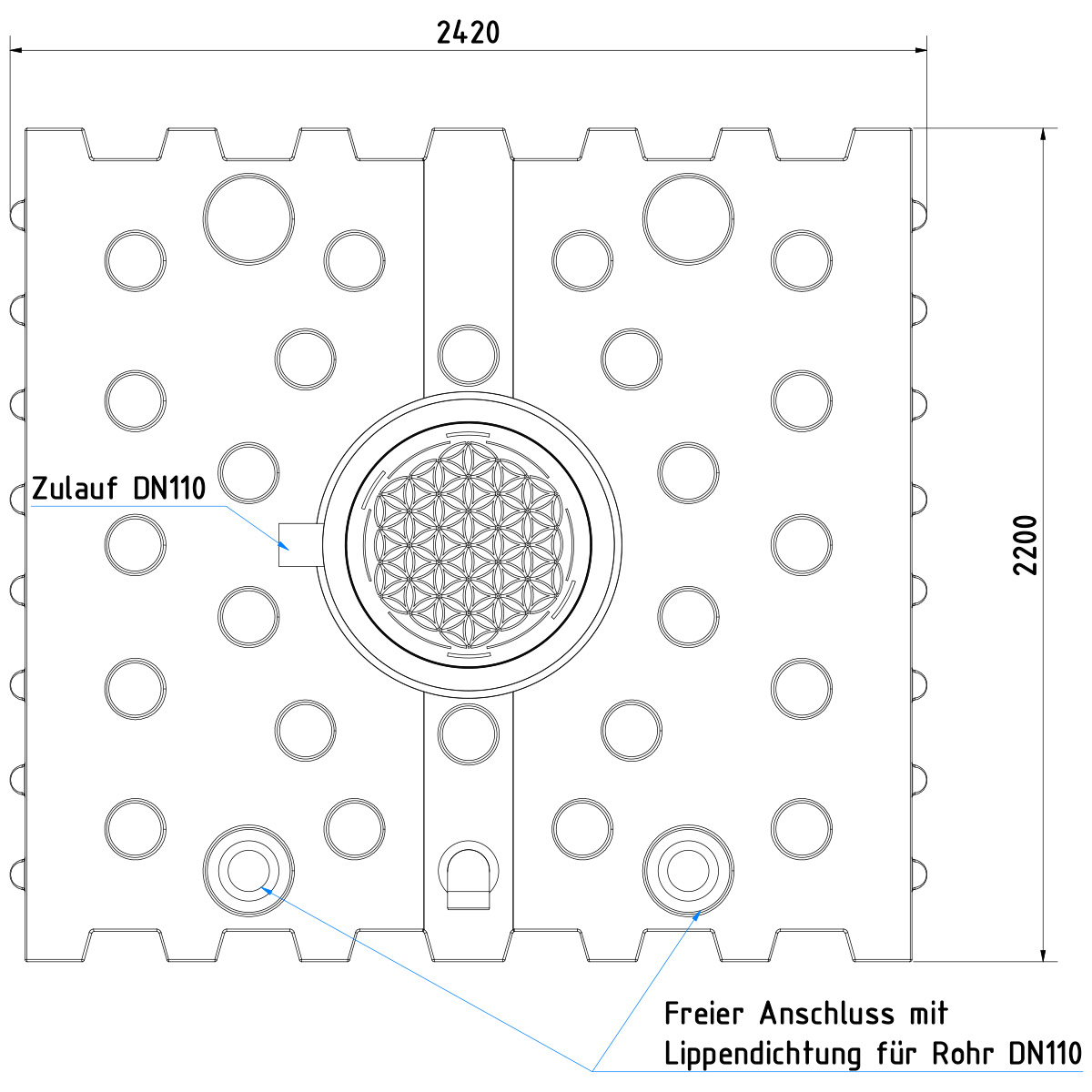 - AQa.Line Flachtank 4000 L (inkl. vormontierter Anschlüsse DN110)