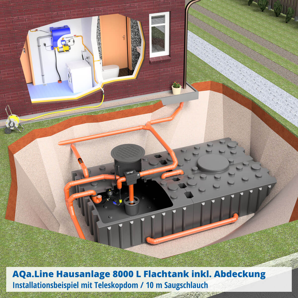 AQa.Line Hausanlage 8000 L Flachtank inkl. Abdeckung