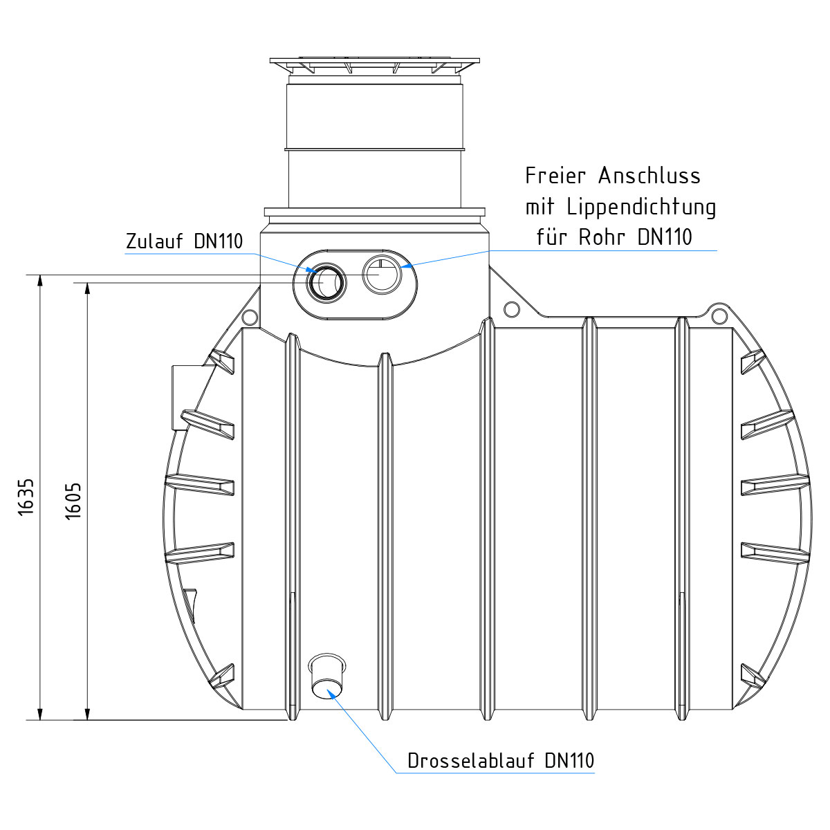 Bitte beachten Sie in jedem Fall die Tiefe des Regenwasserkanals vor Ort bzw. die Tiefe des Ablaufs der Retentionsdrossel.