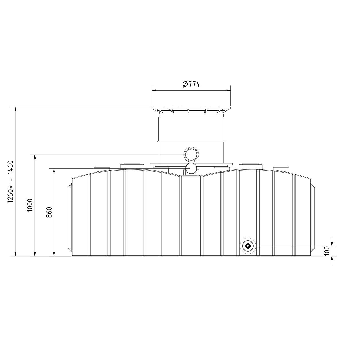 - Enthaltene Tankabdeckung ist höhenverstellbar, begehbar und kindersicher