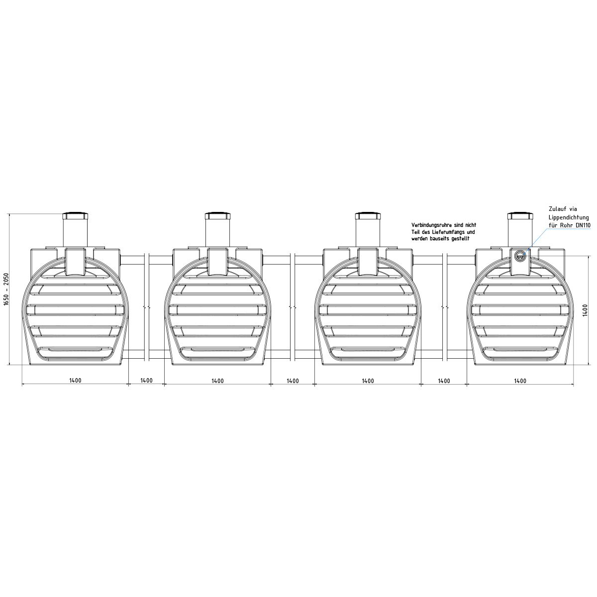 - 12 x Lippendichtung DN 100 für Verbindungsrohre (vormontiert)