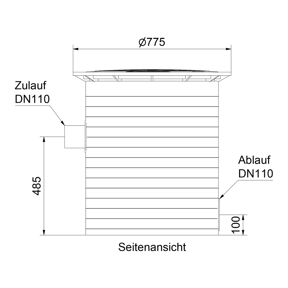- 1 x Be- und Entlüfter DN100 (enthalten ab einem Volumen von 1230 L)