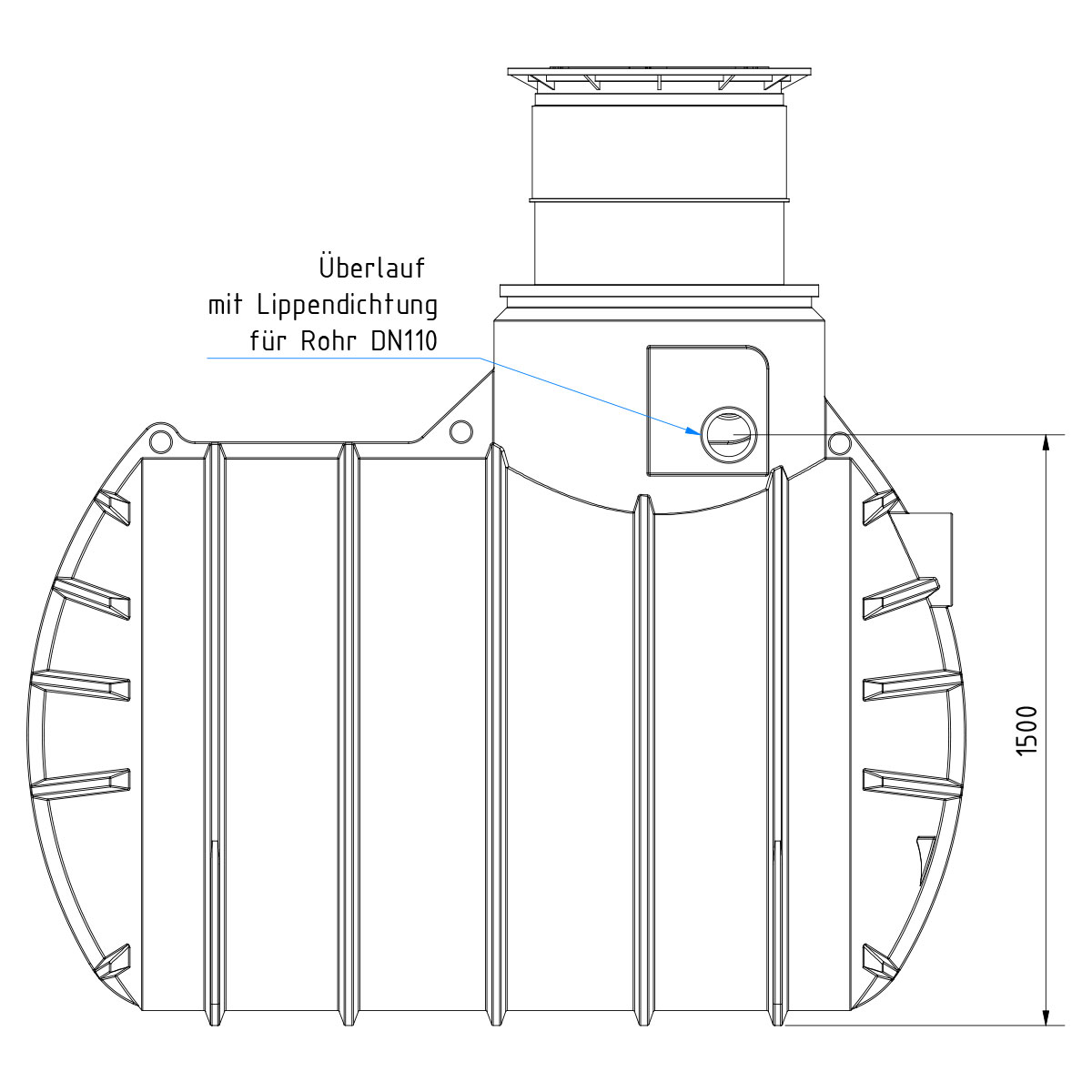- Anschlussfertige Zisterne inkl. höhenverstellbarer Abdeckung und optional wählbarer Komponenten