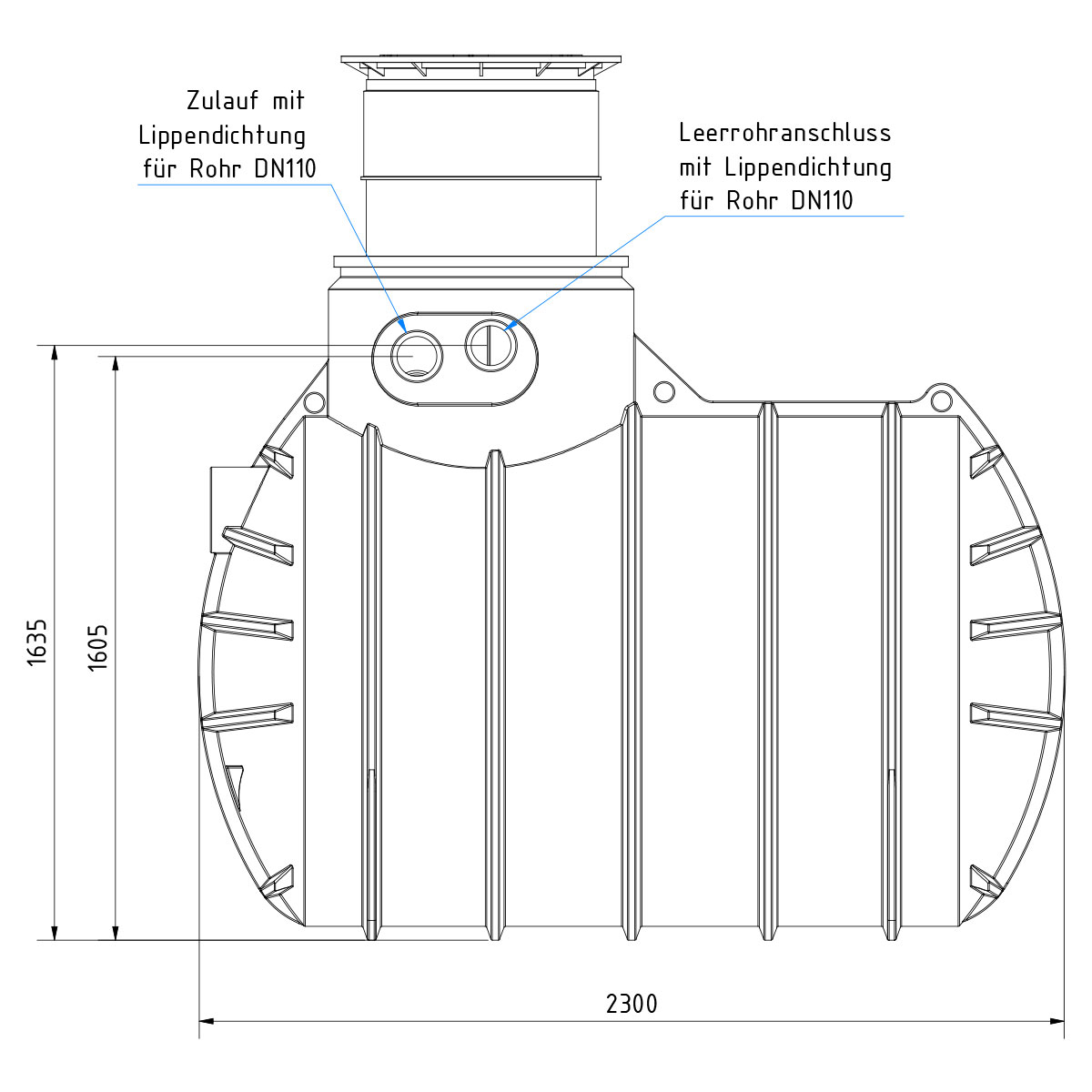 - AQa.Line Zisterne 3400 L (inkl. vormontierter Anschlüsse DN110)