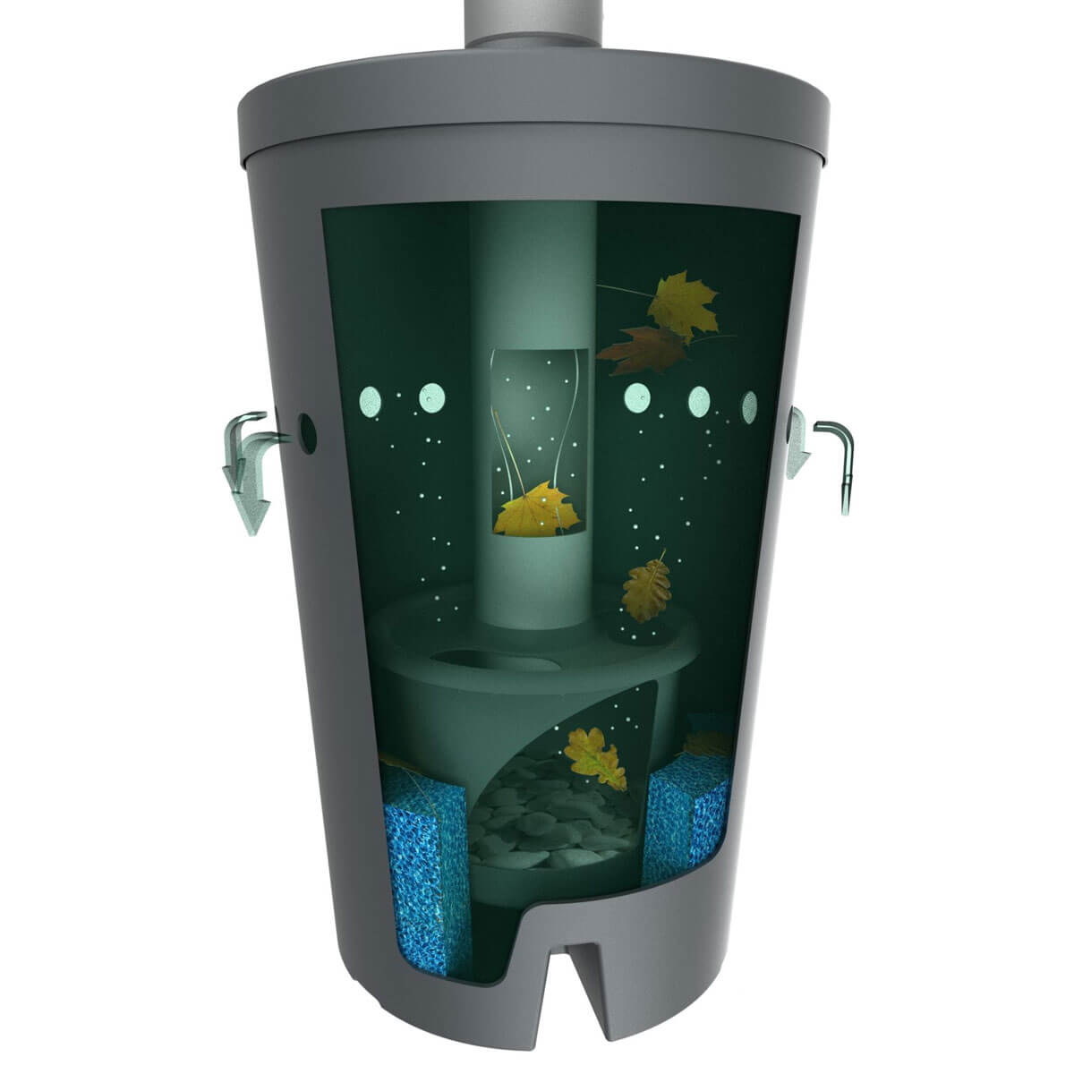 Der patentierte Biovitor-Filter nutzt den natürlichen Prozess der biologischen Selbstreinigung von Gewässern. Dieser Prozess, auf Basis des natürlichen Abbauvorgangs, gewährleistet den höchsten Wirkungsgrad und eine 100-prozentige Regenwasserausbeute. In Kombination mit einer schwimmenden Ansaugung kann eine dauerhaft hochwertige Qualität des Regenwassers gewährleistet werden.