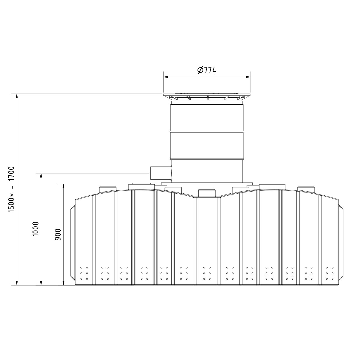 Stapelbare und individuell kürzbare Domverlängerung DN 600, passend für AQa.Line Zisternen ab 03/2021
