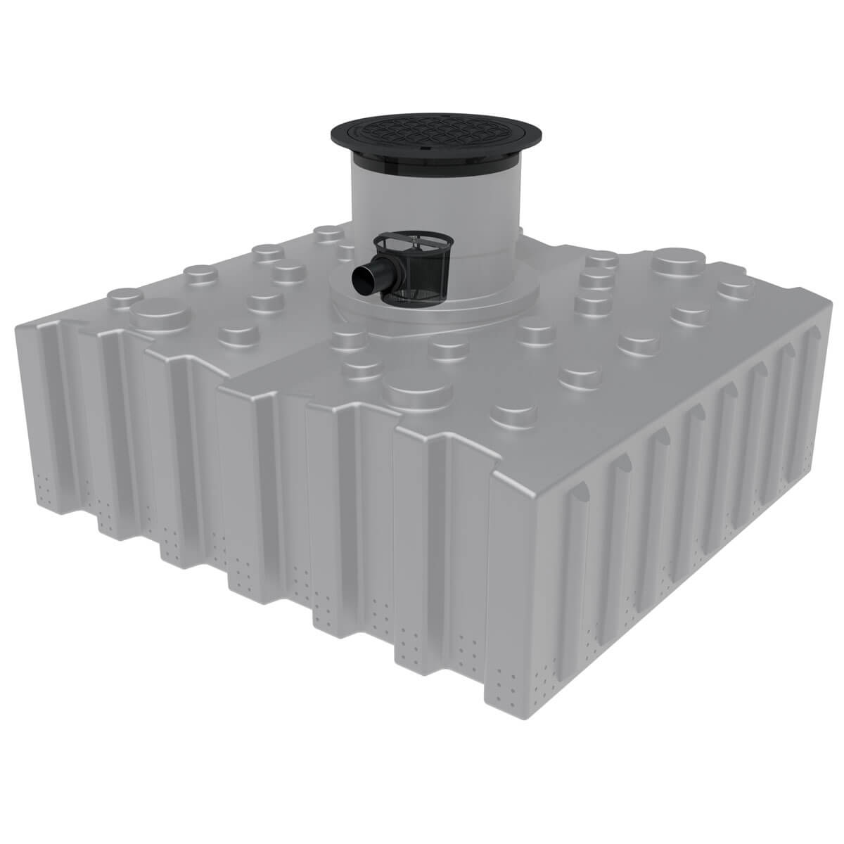Vorfilter für Versickerungsanlagen mit Abdeckung und 2 Anschlüssen DN100