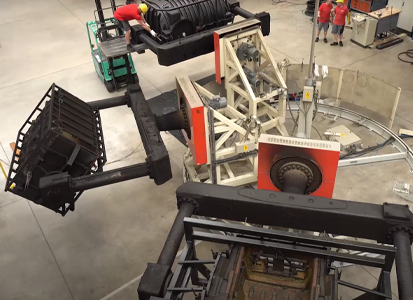 - Kühlung: Nach der Erhitzung wird die Form in eine Kühlkammer transportiert. Durch das langsame Erkalten, während sich die Form weiter dreht, wird das Granulat Schicht für Schicht abgelagert und die Zisterne nimmt langsam ihre endgültige Form an.